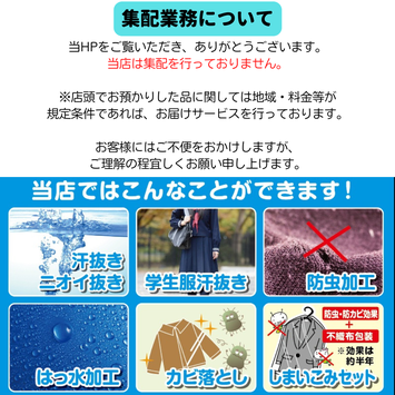 ※学生服は前日PM7時までにお持ちください